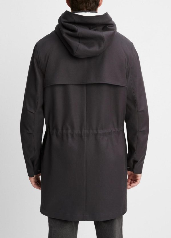- Zip-front closure with snap storm placket.