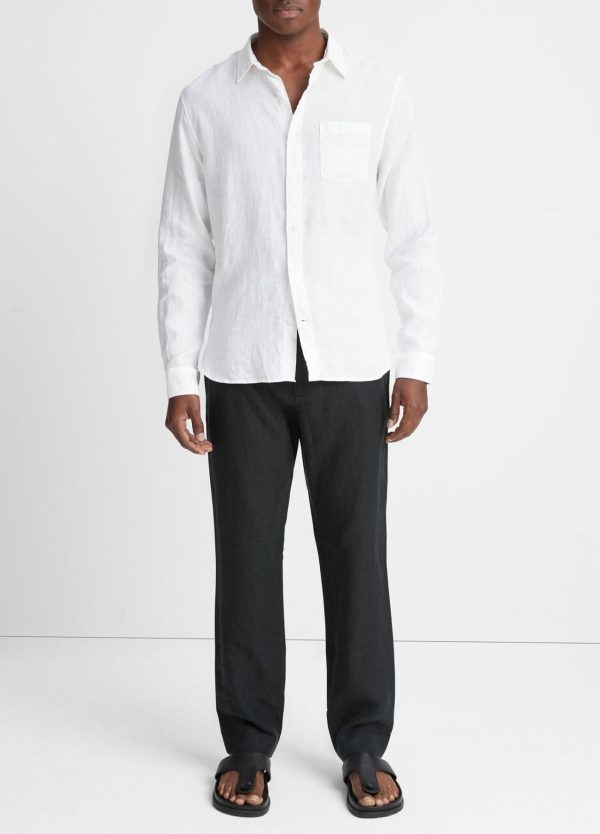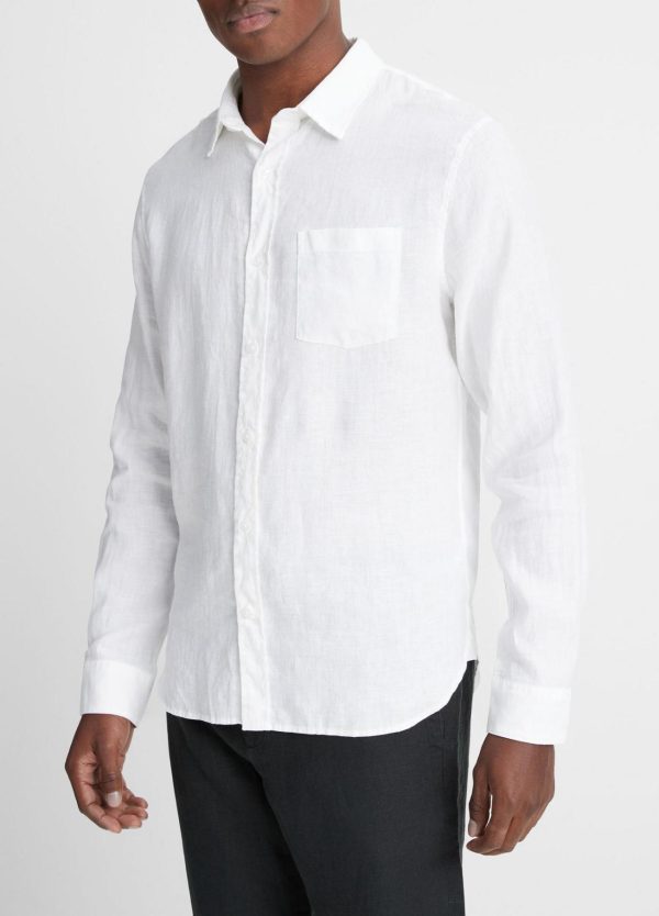 Shirts | Men Vince Linen Long-Sleeve Shirt Optic White