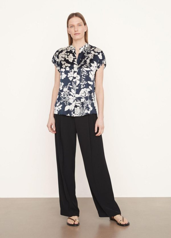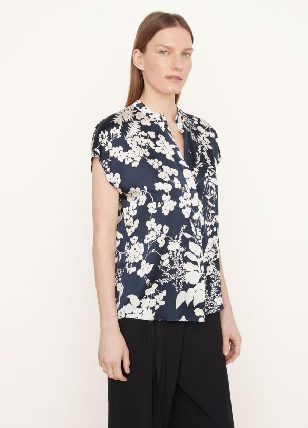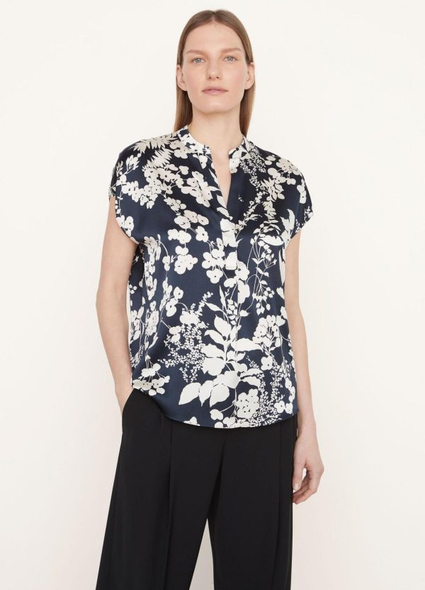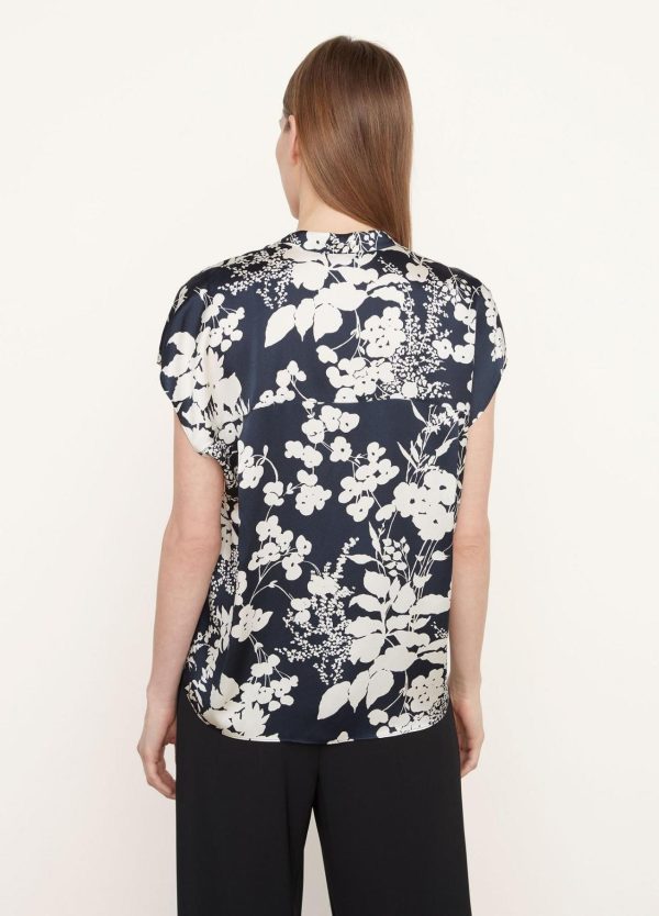 Shirts & Tops | Women Vince Arboretum Silk Cap-Sleeve Blouse Coastal Blue
