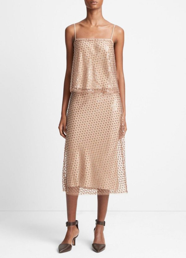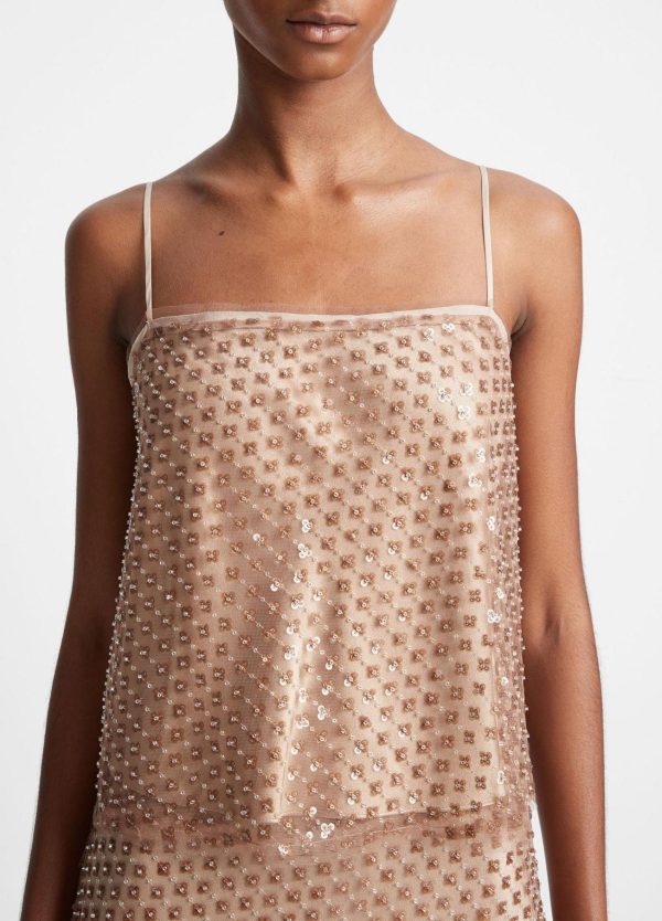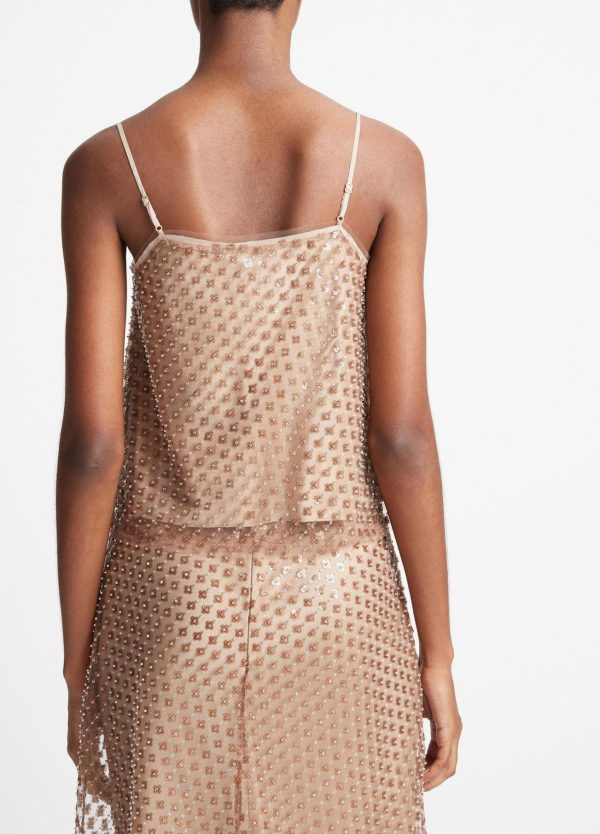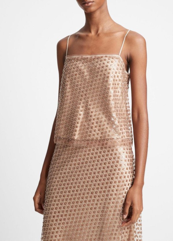 Textured sequins and beads add mesmerizing shine to this feminine straight-neck camisole. Pair it with the matching Beaded Sequin Straight Skirt for an all-out festive look, or use it to dress up denim and skirts.