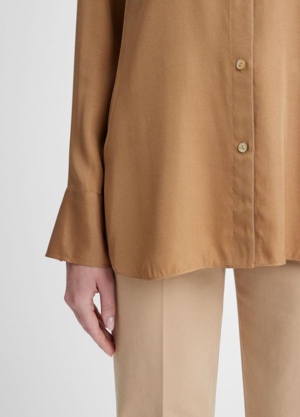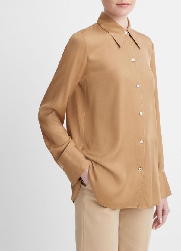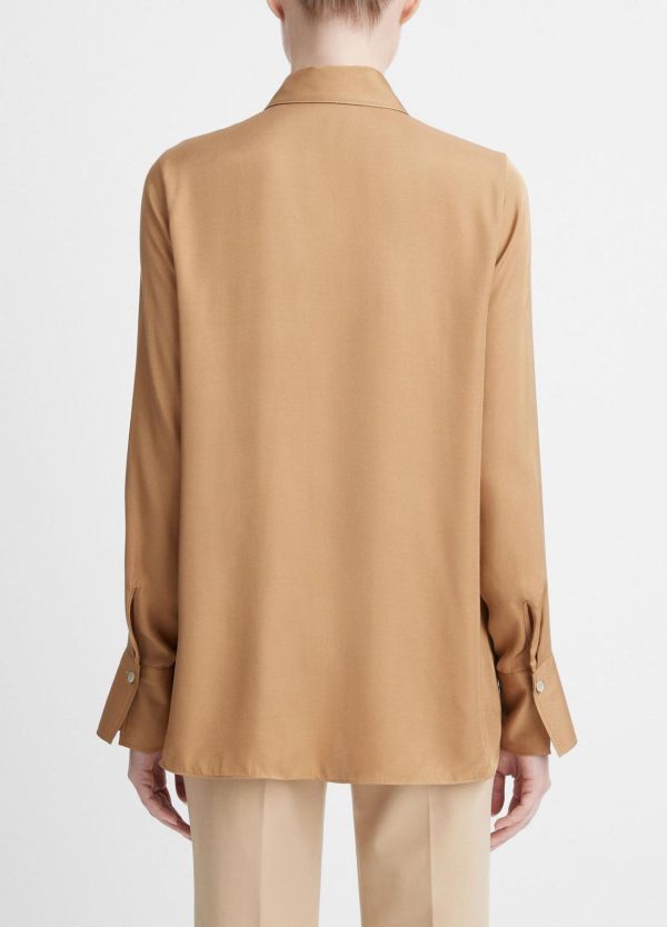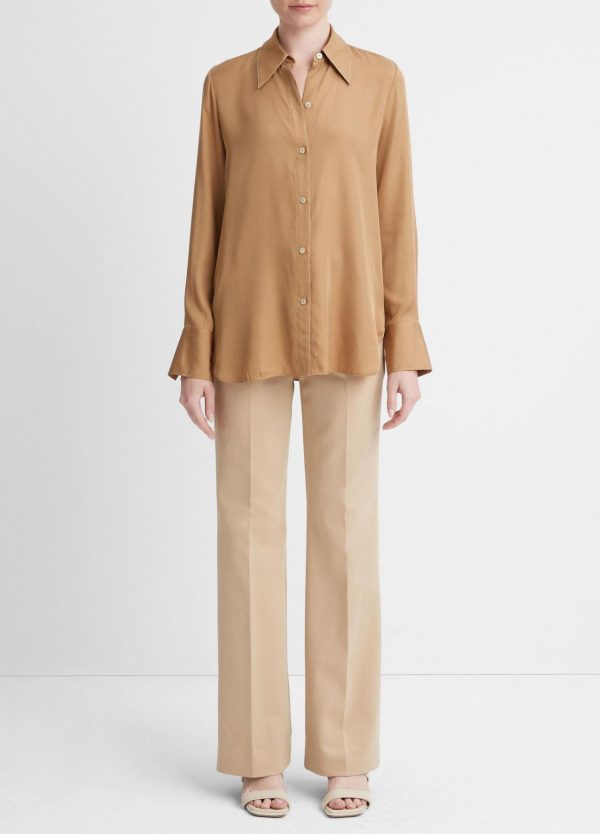 HEROES | From our seasonal edit of pieces that elevate the everyday. A seasonless essential, our long-sleeve button-front blouse is crafted of soft, lightweight silk-blend twill in a relaxed, easy body.