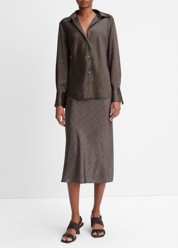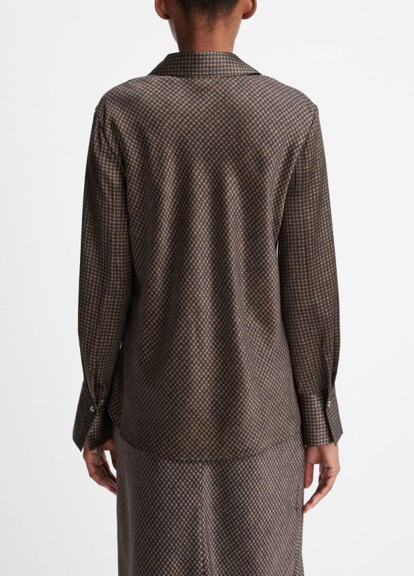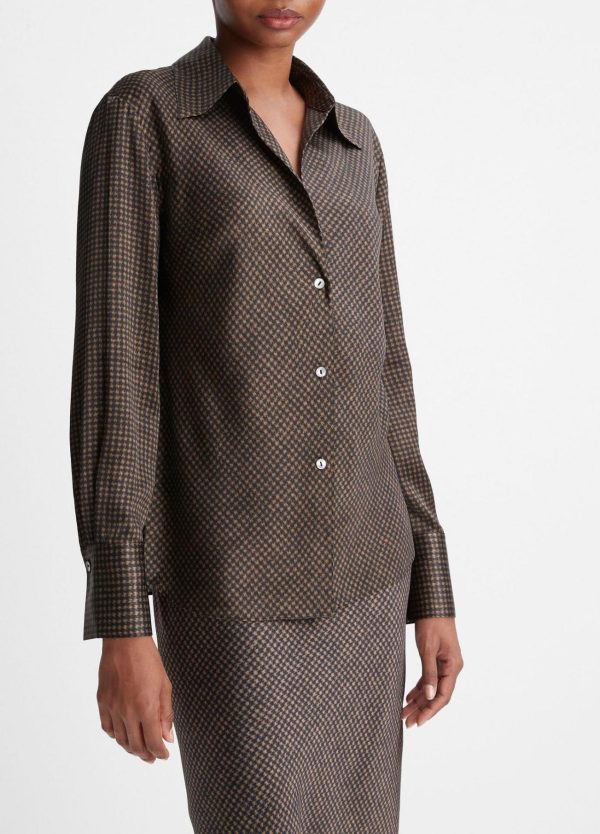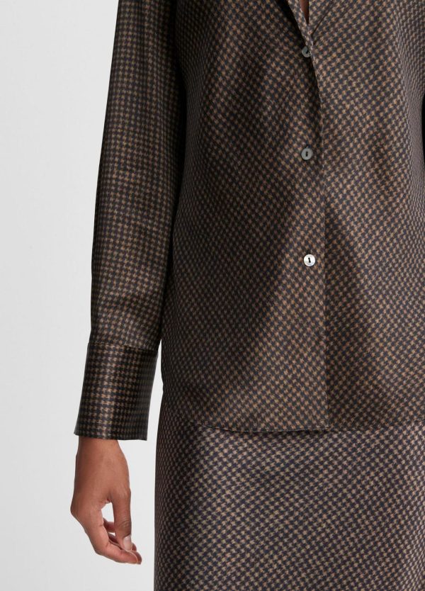 Shirts & Tops | Women Vince Houndstooth Silk Bias Long-Sleeve Blouse Black/camel