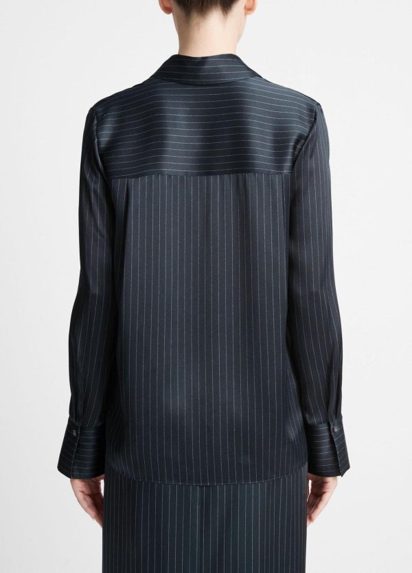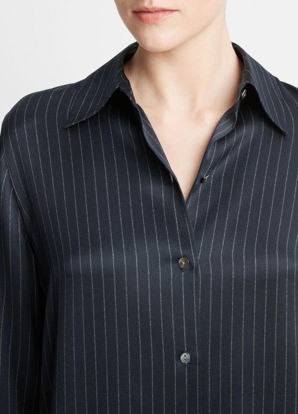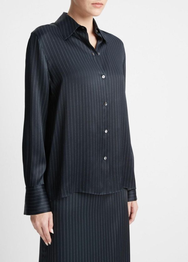 Classic shirting details and suit-inspired pinstripes are softened in smooth silk satin. Pair it with the matching blazer and skirt for a head-to-toe look.