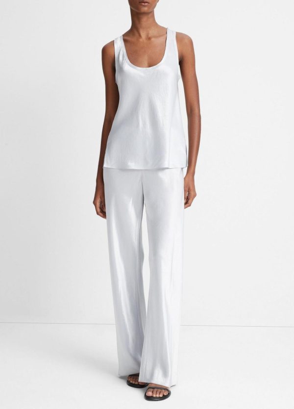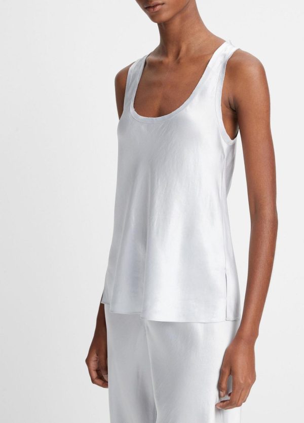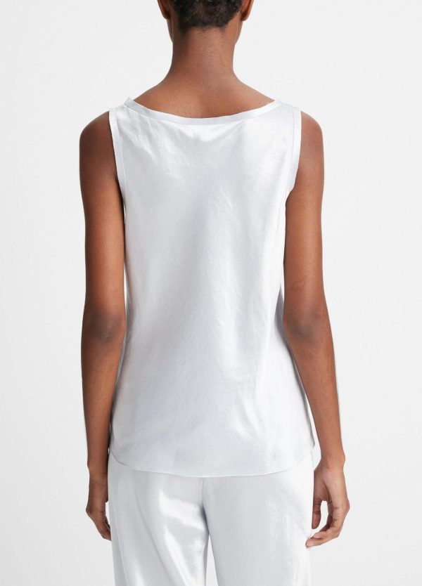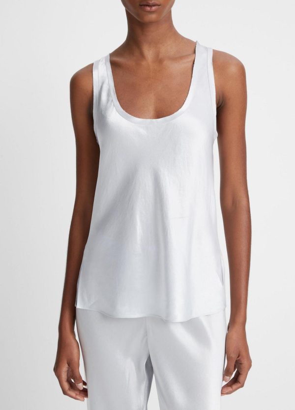 Crafted of our incandescent Japanese Naia™ acetate satin, our scoop-neck tank is finished with raw edges for an unexpected textural touch. Pair it with the matching Fluid Satin Bias Pant and heels for a night out.