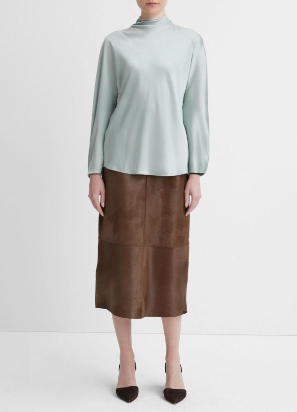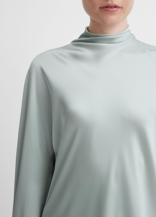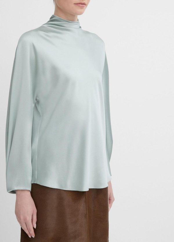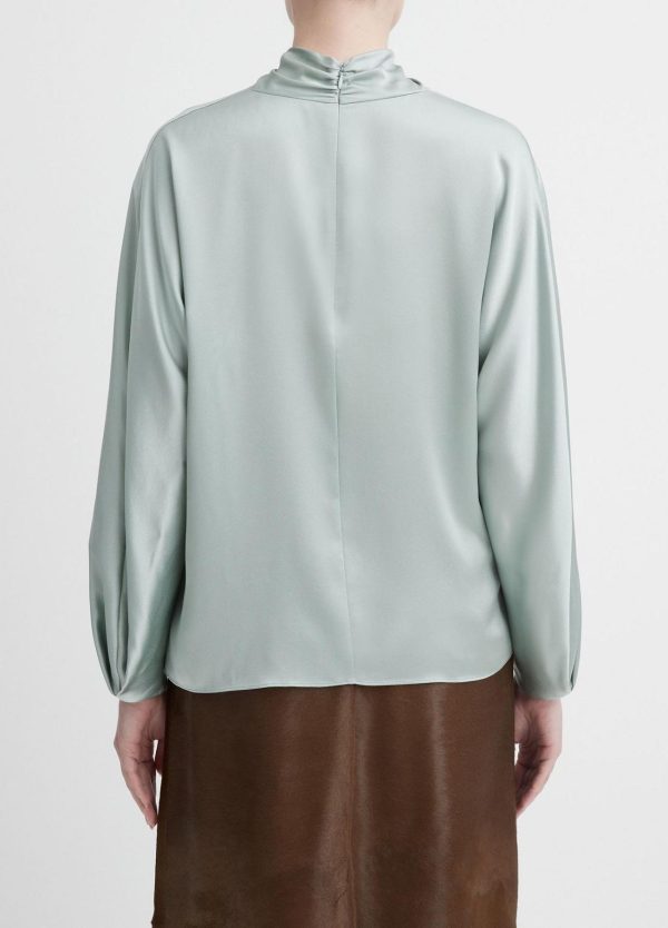 Shirts & Tops | Women Vince Silk Draped Funnel Neck Blouse Sea Mist