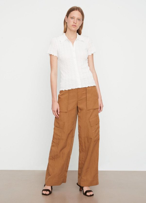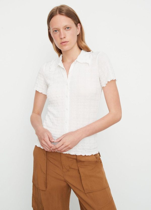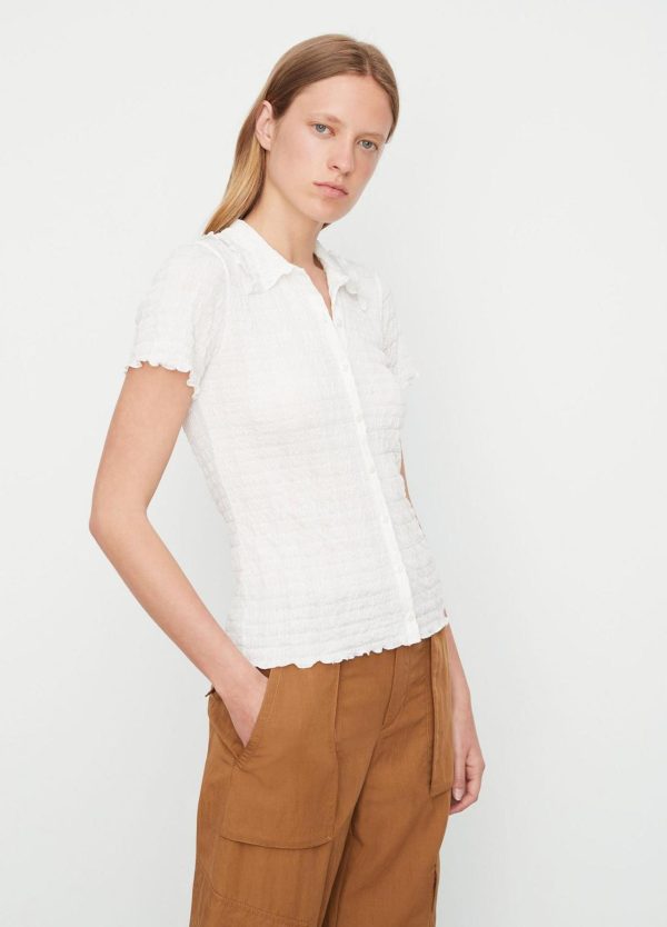 Shirts & Tops | Women Vince Smocked Short-Sleeve Button-Front Shirt Off White