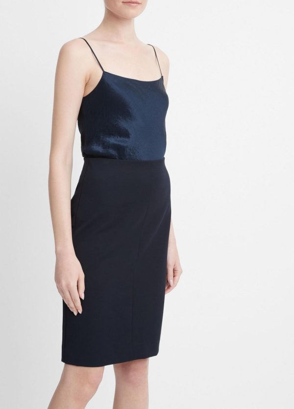 This classic seamed-front pencil skirt is composed of stretchy Italian cotton-blend crepe that instantly feels put together with minimal effort.