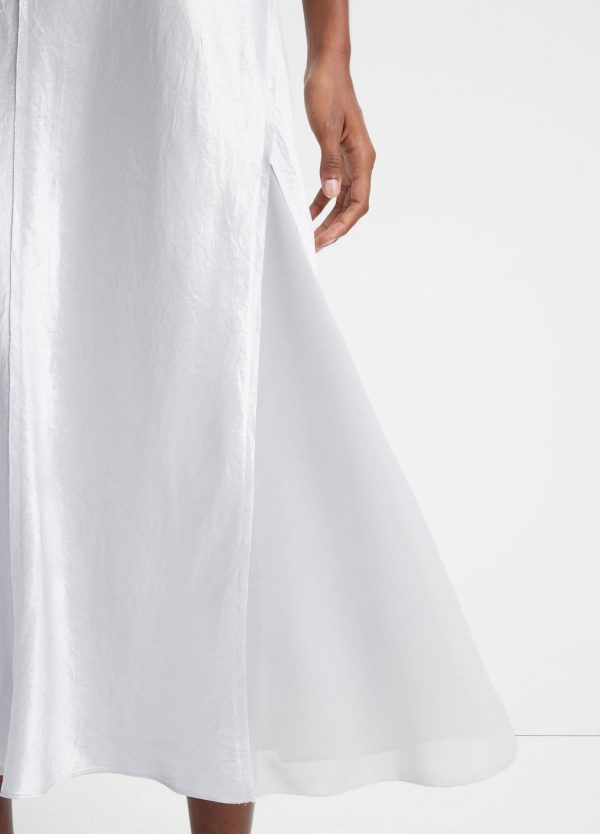 Crafted of our incandescent Japanese Naia™ acetate satin, our slip skirt is designed with sheer chiffon panels at the sides, artfully skimming the body and adding mesmerizing movement.