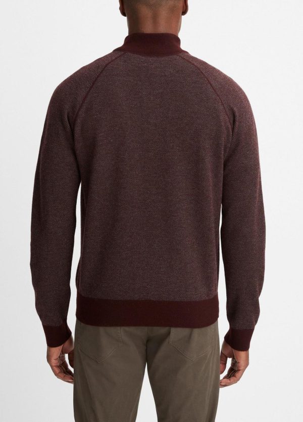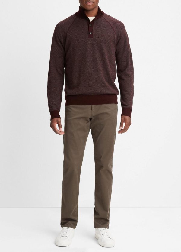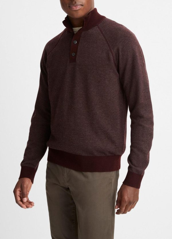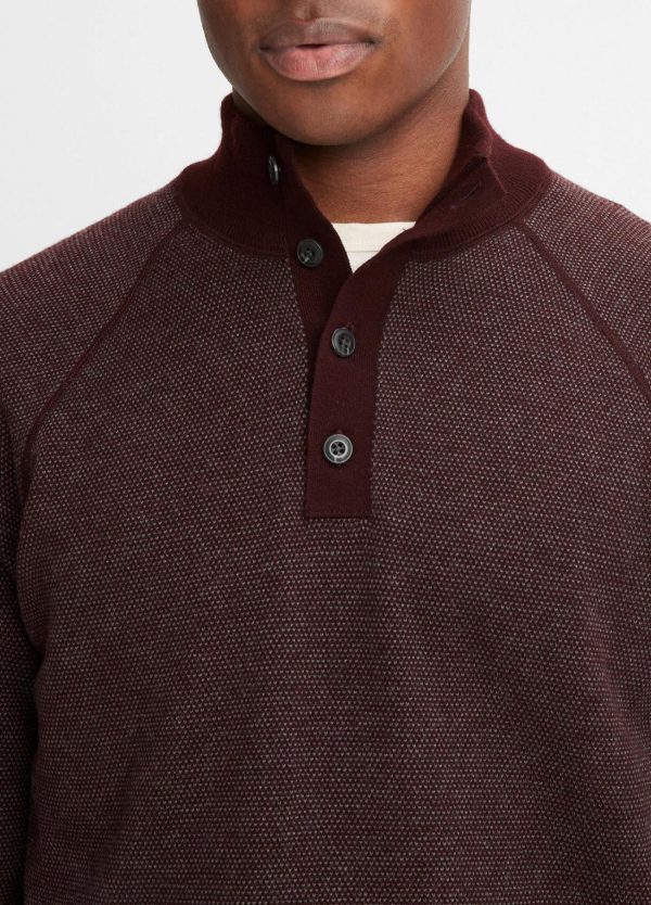 Sweaters | Men Vince Birdseye Button Mock Neck Sweater Pinot Vino/medium Heather Grey