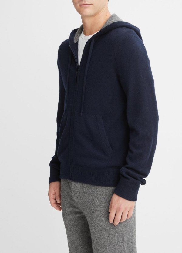 Sweatshirts & Hoodies | Men Vince Cashmere Full Zip Hoodie Coastal Blue